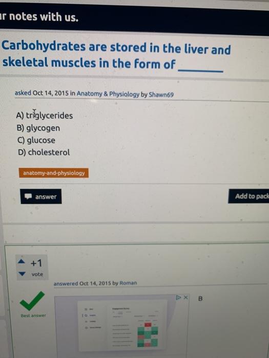 for "Carbohydrates Are Stored In Fhe Kiver And Musc In The Form Of : Carbohydrates Are Stored In The Liver And Skeletal Muscles In The Form Of A Cholesterol B Glycogen C Glucose D Triglycerides Study Com"
